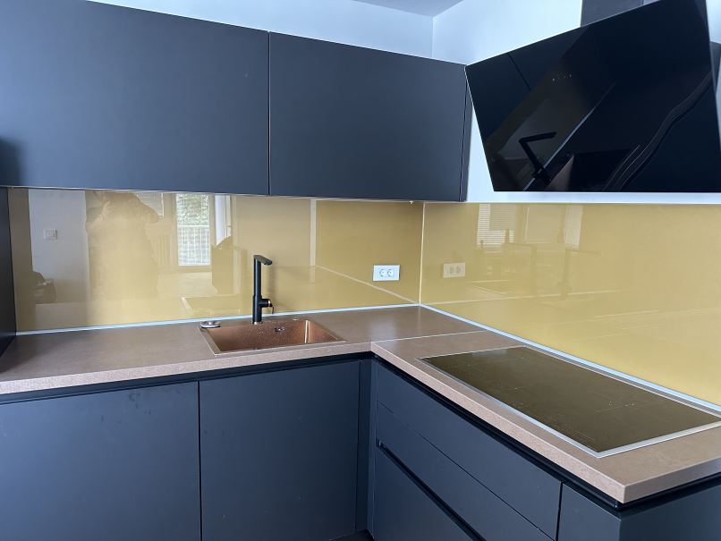 Nadpultna stekla za kuhinje, barvana ali s fototapeto.